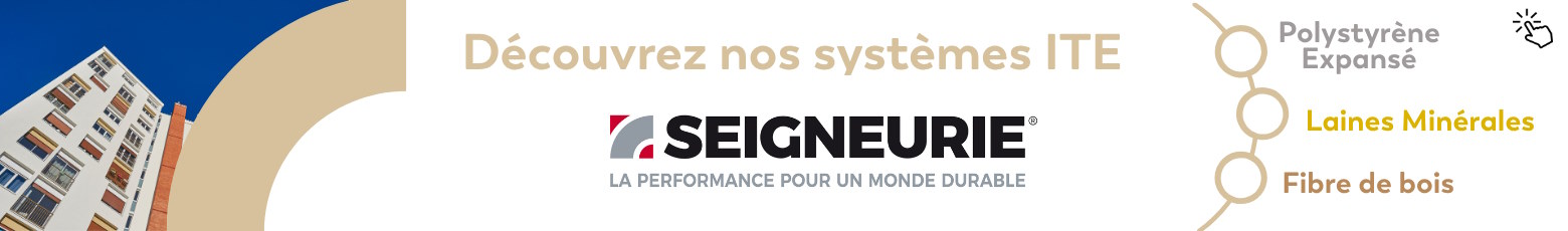 Seigneurie® s'engage pour la rénovation énergétique des bâtiments avec des systèmes d'Isolation Thermique par l'Extérieur certifiés, répondant aux règlementations et attentes du marché et des applicateurs. Découvrez une gamme complète de produits (isolants, sous-enduits, finitions, et accessoires), pour la réalisation de tous vos projets.