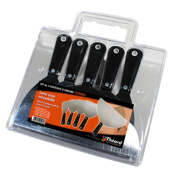 - Blister contenant 5 couteaux de 75 mm, 100 mm, 125 mm, 150 mm et 250 mm.
