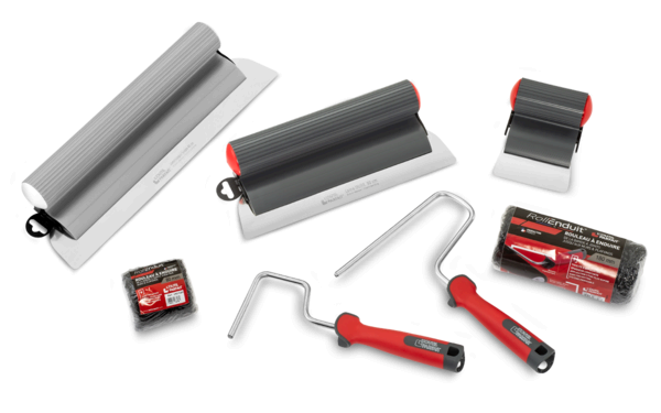 1 ROLL’ENDUIT 80 mm, 1 ROLL’ENDUIT 180 mm, 1 couteau DECOLISS’DUR 10 cm, 1 couteau DECOLISS’DUR 30 cm, 1 DECOLISS’ souple 40 cm.