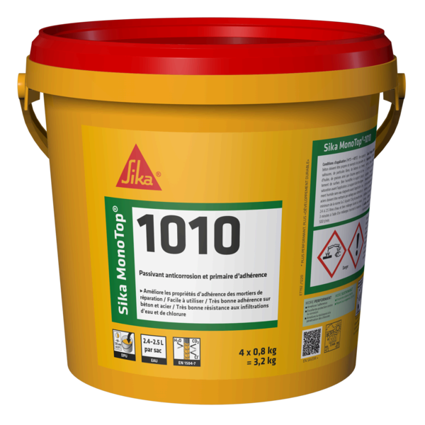 Coulis monocomposant à base de ciment, enrichi de matières synthétiques, utilisé comme pont d'adhérence et comme protection anticorrosion, conforme aux exigences de la norme EN 1504-7.
